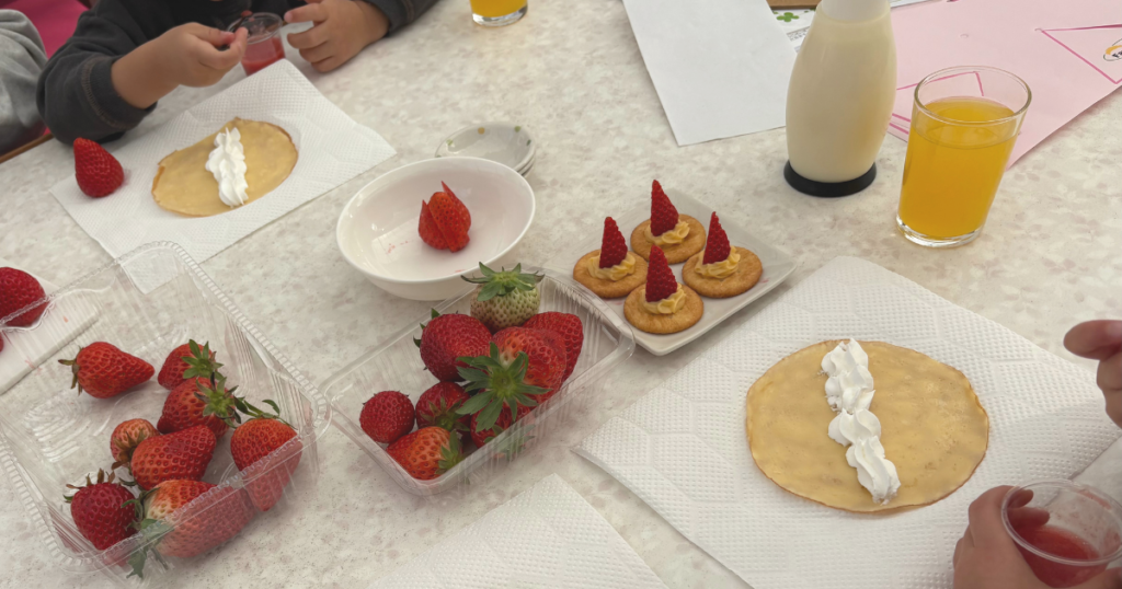 子どもたちも自分で採った、クレープにするには大きすぎるいちごを溢れそうなくらい乗せて頬張って、大満足でした。